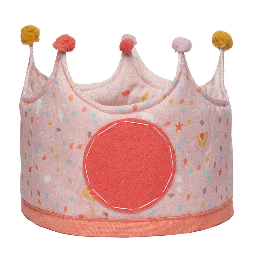 Alegre y cómoda corona de cumpleaños reversible. Fabricada con tela de algodón reversible. Por un lado nuestros preciosos unicornios y por el otro una fiesta de confeti. Acolchada para mayor comodidad, cierre ajustable de velcro y decorada con unas divertidas borlas a juego. Un bonito regalo que acompañará la celebración año tras año. Incluye una preciosa caja de presentación y un pack de números del 0 al 9.