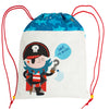 ¡Atención amantes de los piratas!...Divertida mochila infantil con nuestro divertido pirata Patch. De algodón y con forro interior, con cordones a conjunto.