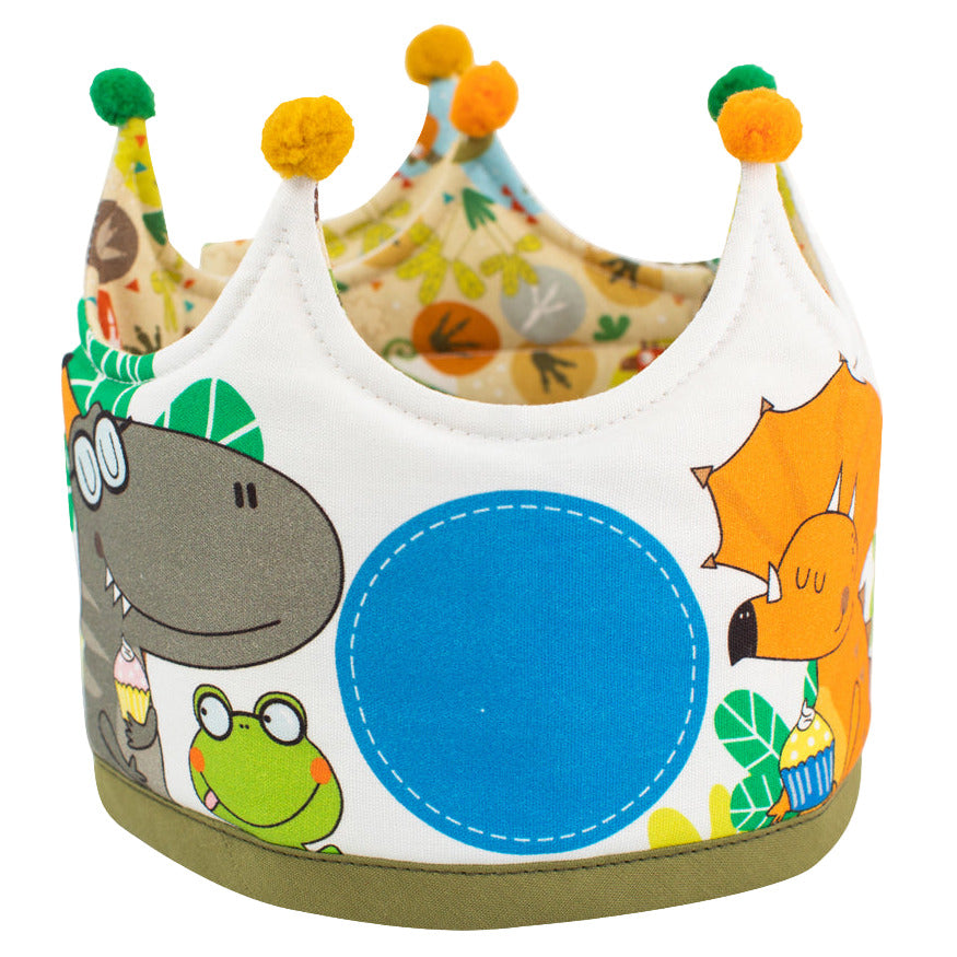 Divertida y alegre corona de cumpleaños reversible con nuestros fantásticos personajes dinosaurios. Ideal para amenizar cualquier celebración y fiesta de aniversario. Un bonito regalo que acompañará al niño año tras año. Incluye una preciosa caja de presentación y un pack de números del 0 al 9.