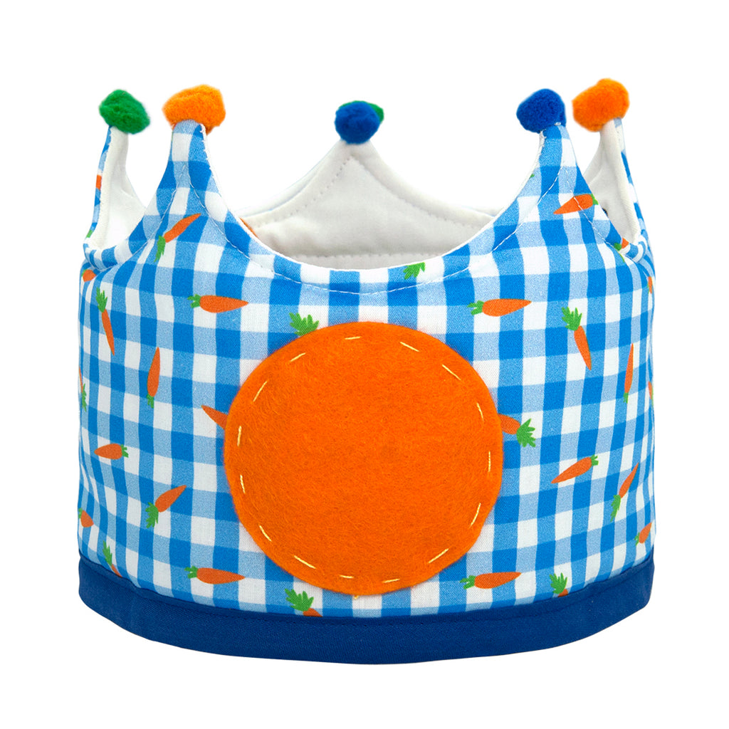 Con esta divertida y alegre corona de cumpleaños reversible podrás amenizar cualquier celebración y fiesta de aniversario. Con nuestro nuevo estampado de divertidos animales por un lado y un divertido estampado de cuadros y zanahorias por el otro. Un bonito regalo que acompañará al niño año tras año. Incluye una preciosa caja de presentación y un pack de números del 0 al 9.