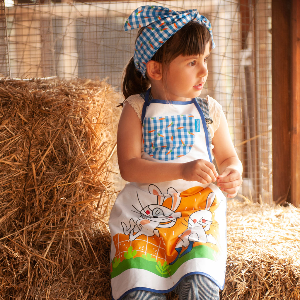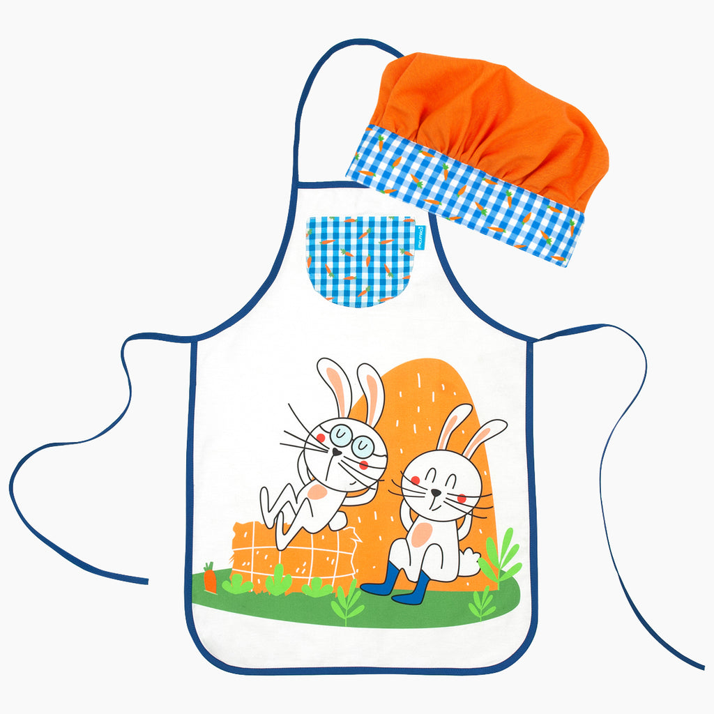 A todas las niñas y niños les encanta ayudar a sus papás en la cocina, además de ser una fantástica forma de interactuar con ellos. Así que no te lo pienses más y ponle un delantal micumacu. Este modelo, con nuestros divertido hermanos conejos, va a encantar a tu hijo ya ti te va a enamorar. Gorro incluido.