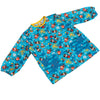 Bonita bata escolar con nuestro alegre estampado Ocean en fondo azul y divertidos piratas que limpian el océano. Con botones y práctica goma en los puños. Se pueden personalizar con el nombre bordado a la altura del pecho. ¡Para salirse de los cuadros y las rayas clásicas!