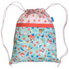 Divertida y cómoda mochila infantil . De algodón y con forro interior, tiene nuestro divertido estampado de primavera en tonos mint y de fresas en tonos rosa, con cordones a juego. Se puede personalizar con el nombre bordado.