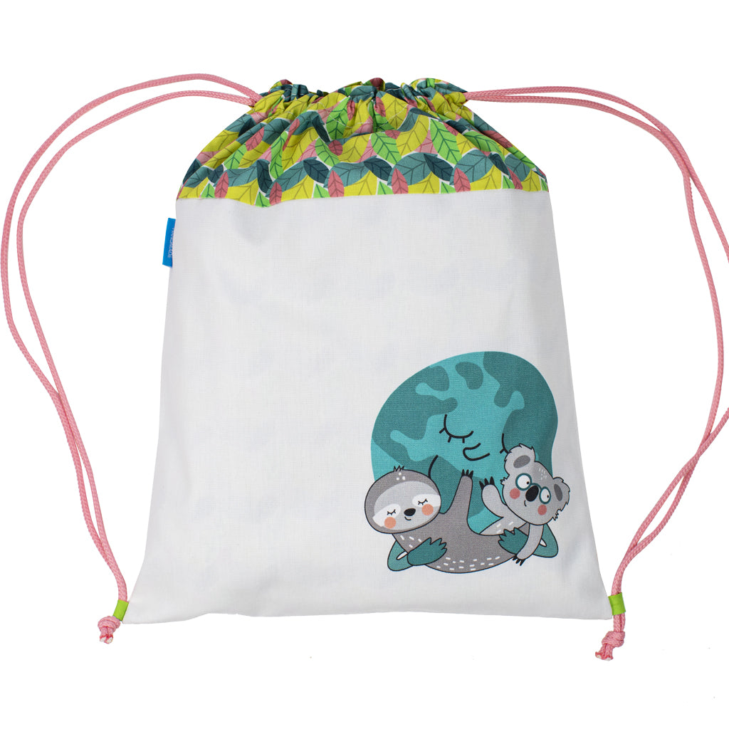 Esta adorable mochila es perfecta para ir al cole o como multiusos, y está hecha de tela con forro interior. Tiene estampado a nuestros divertidos personajes de la Tierra rosa.