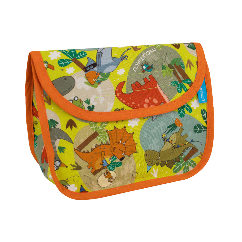 No hay nada mejor que convertir la merienda en un momento especial, con detalles que se salgan de lo típico, por eso te proponemos preparar la merienda o el desayuno de tu hijo en nuestra bolsa inspirada en el misterioso mundo de los dinosaurios que tanto gusta a los más pequeños. Confeccionada en tela de algodón 100% y con el interior plastificado para proteger sus alimentos.