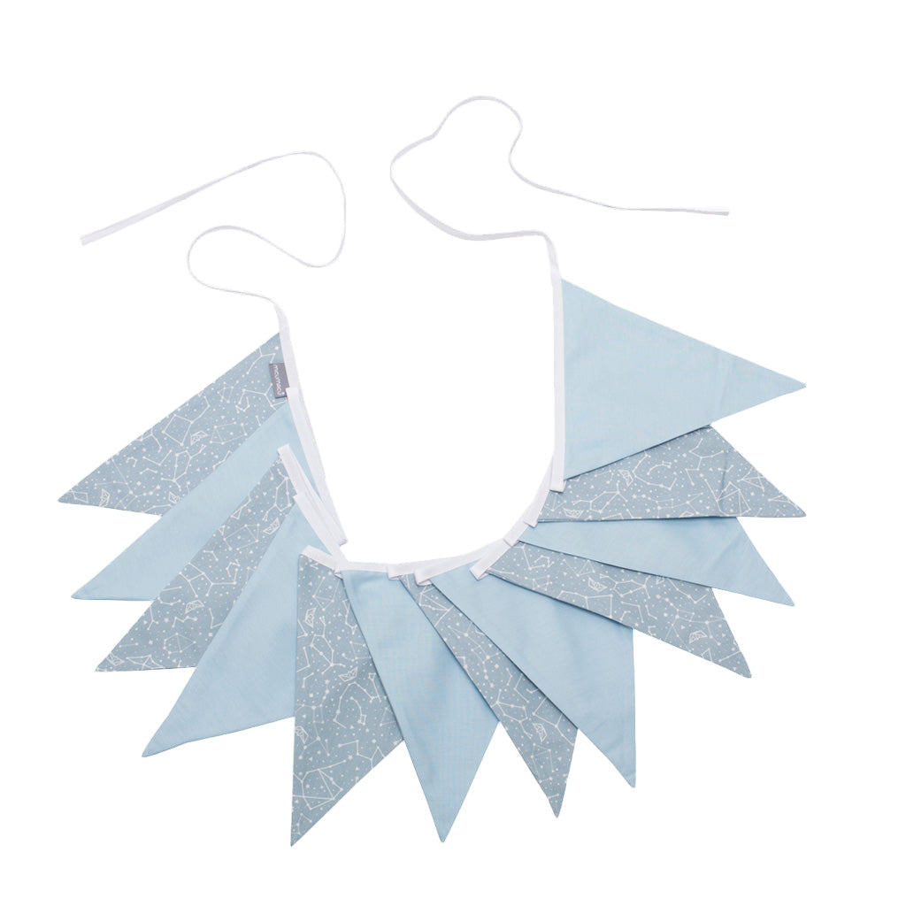 Te presentamos las constelaciones Micumacu, formadas por dulces estrellas situadas a años luz y que han venido para acompañar a las más pequeñas de la casa mientras duermen o en cualquier celebración. De color blue grey y ribeteada con bies color blanco. ¡Seguro que le encantan!