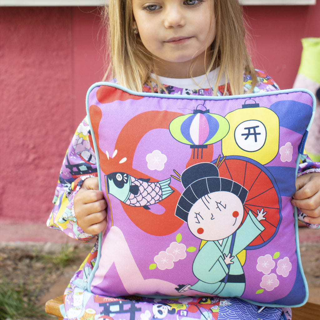 Los cojines son complementos ideales para sofás, sillones y camas además son perfectos para conseguir un mejor descanso. Este modelo con nuestra divertida japonesita llamada Keiko es perfecto para llevar a la guardería o decorar cualquier espacio de la casa. ¡Ideal para sushi lovers!