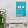 Lámina con una preciosa ilustración de un par de simpáticas medusas. Ideal para decorar habitaciones y espacios que quieras personalizar con un toque alegre. Puedes comprar la lámina por separado o bien el conjunto de lámina y el marco que muestra la imagen.