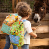 Nuestras mochilas con solapa son ideales para ir al cole. No pesan nada, son muy ligeras y cómodas. Además, nuestro divertido estampado green slow farm hará que ir al cole sea una fantástica aventura por el campo.